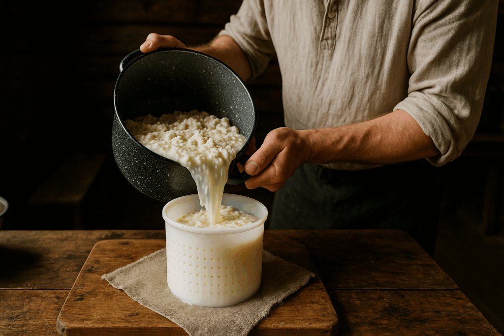 Wszystko zaczyna się od świeżego mleka owczego, które po udoju zostaje przefiltrowane i delikatnie podgrzane. Następnie dodaje się naturalną podpuszczkę, dzięki której mleko ścina się w skrzep – to pierwszy krok do powstania wyjątkowego sera.